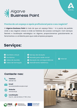 A ACRAL – Associação do Comércio e Serviços da Região do Algarve apresenta o Algarve Business Point, que representa a evolução de um projeto já existente, o Business Solutions (centro de negócios) criado pela Associação há vários anos. Agora, renasce com uma nova identidade visual, um conceito renovado e um posicionamento alinhado com as necessidades e exigências atuais das empresas, startups e empreendedores da região.
