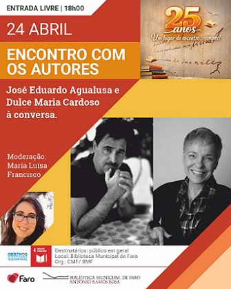 A Biblioteca Municipal de Faro recebe, no próximo dia 24 de abril de 2026, às 18h00, uma conversa entre dois dos mais relevantes nomes da literatura contemporânea em língua portuguesa: Dulce Maria Cardoso e José Eduardo Agualusa. A sessão será moderada por Maria Luísa Francisco.