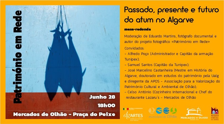 Mercados de Olhão, em parceria com o Património em Rede, projeto fotográfico de Eduardo Martins, organiza este sábado, 28 de Junho, pelas 18h00 na Praça do Peixe, uma mesa redonda sob o tema “Passado, presente e futuro da pesca do atum no Algarve”.