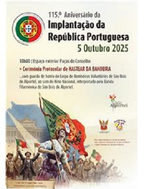 Pelas 10h00 junte-se à Cerimónia Protocolar de Hastear da Bandeira, nos Paços do Concelho, com acompanhamento musical da Banda Filarmónica e guarda de Honra pelo Corpo de Bombeiros Voluntários de São Brás de Alportel, para assinalar as comemorações do 115.º Aniversário da Implantação da República.