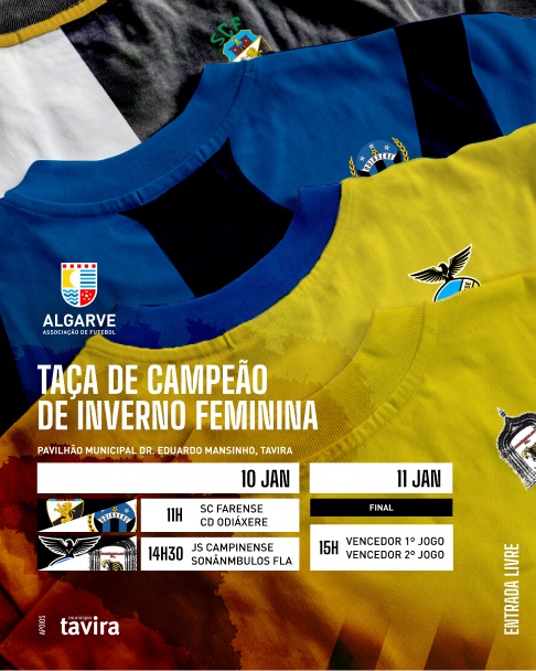 No futsal, a Taça de Campeão de Inverno Feminina vai disputar-se já este fim de semana, nos dias 10 e 11, no Pavilhão Municipal Dr. Eduardo Mansinho, em Tavira.