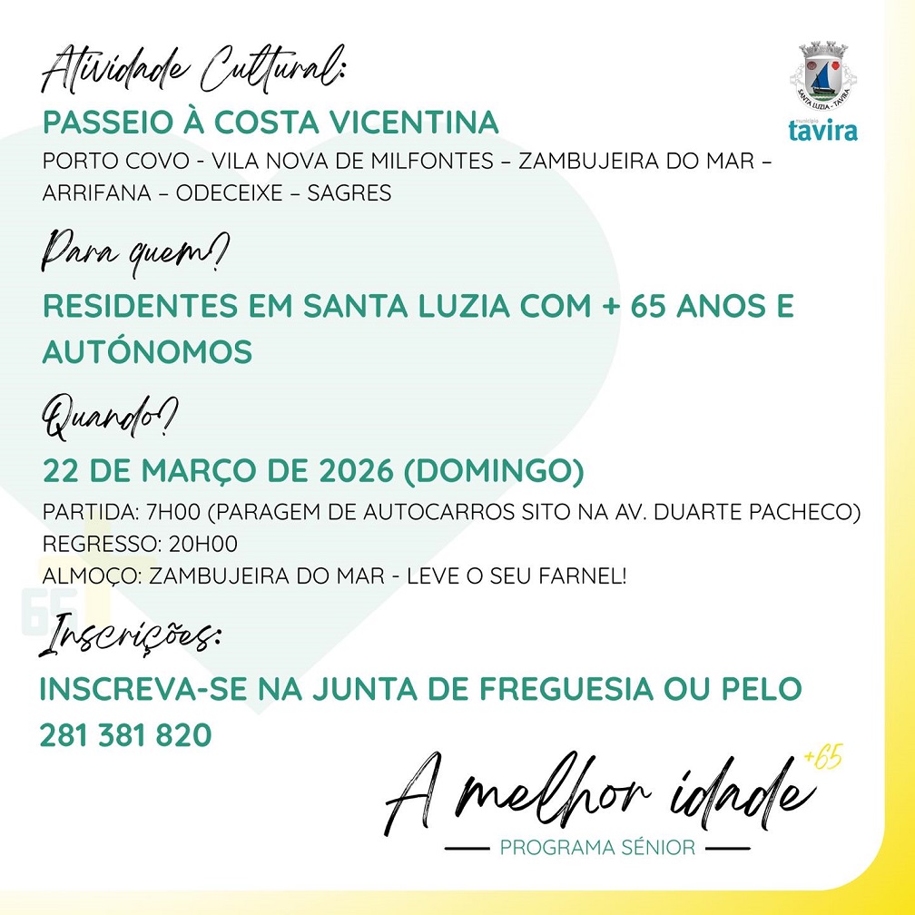 Se tem 65 anos ou mais, é autónomo, vive em Santa Luzia e sente falta de momentos de lazer e ocupação, este projeto é para si!