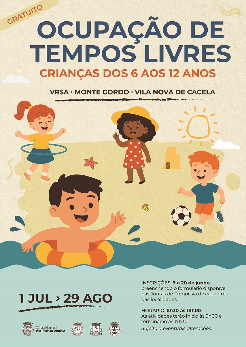 O Município de Vila Real de Santo António, em colaboração com as Juntas de Freguesia, promove o Programa de Ocupação de Tempos Livres 2025, destinado a crianças dos 6 aos 12 anos.