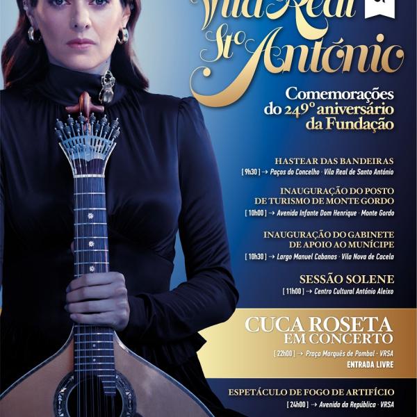 Vila Real de Santo António celebra 249.º aniversário da sua fundação com concerto de Cuca Roseta