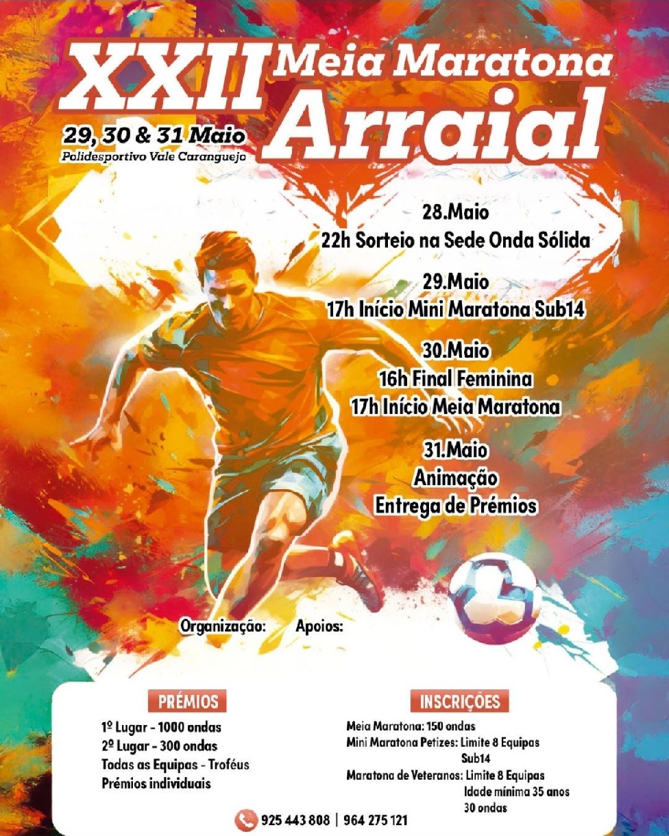 Em Tavira, a XXII Meia Maratona do Arraial, organizada pela Associação Onda Sólida, realiza-se no Polidesportivo Vale Caranguejo, nos dias 29, 30 e 31 de maio, reunindo atletas de várias idades.