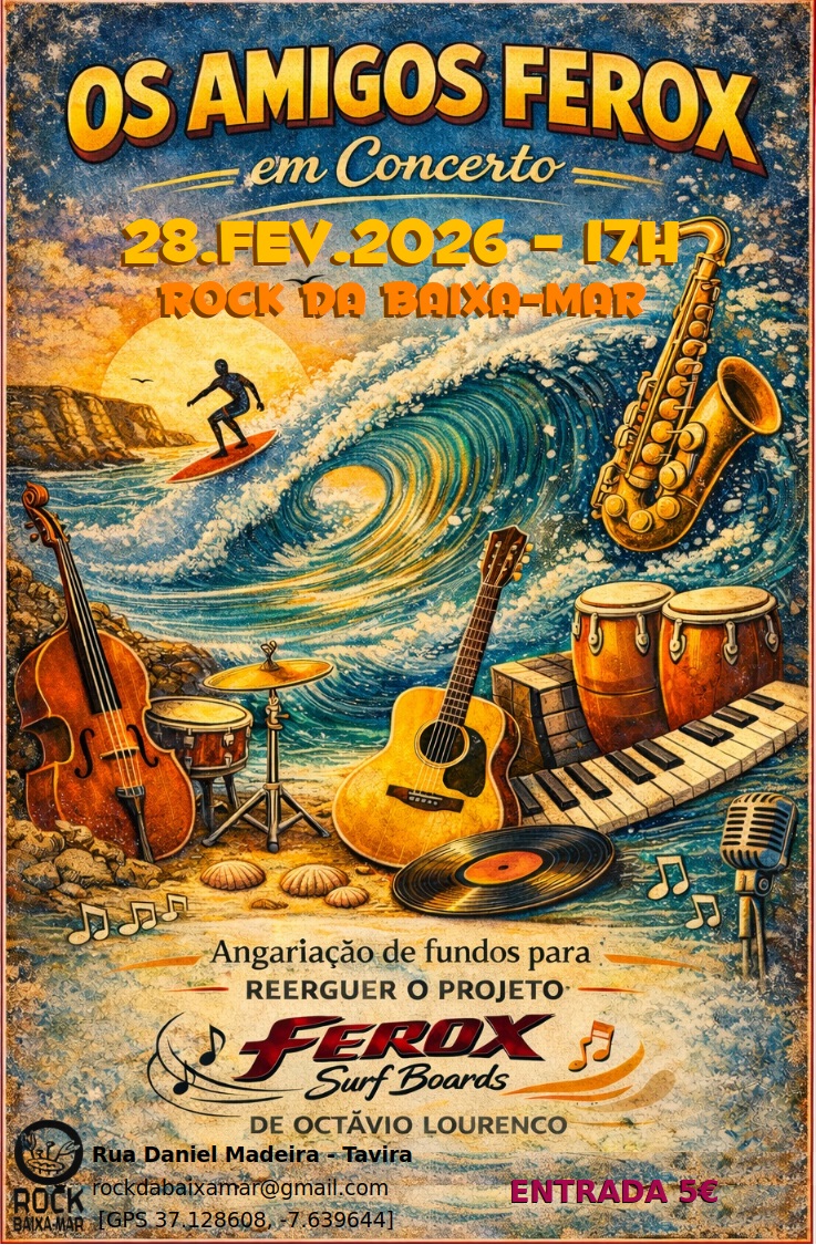 Sábado há concerto solidário na sede da Associação Rock da Baixamar, em Tavira, que serve como angariação de fundos para reerguer o projeto Ferox Surfboards.