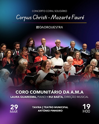 Em Tavira, o Teatro Municipal António Pinheiro acolhe, no dia 29 de março, pelas 19 horas, o Coro Comunitário da Associação Musical do Algarve – Orquestra do Algarve, num concerto solidário que inclui duas obras-primas da músic