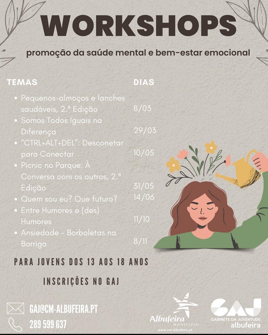 O Município de Albufeira, através do GAJ – Gabinete da Juventude de Albufeira está a organizar vários Workshops destinados a jovens com idades compreendidas entre os 13 e os 18 anos, com o objetivo de promover o bem-estar e a s