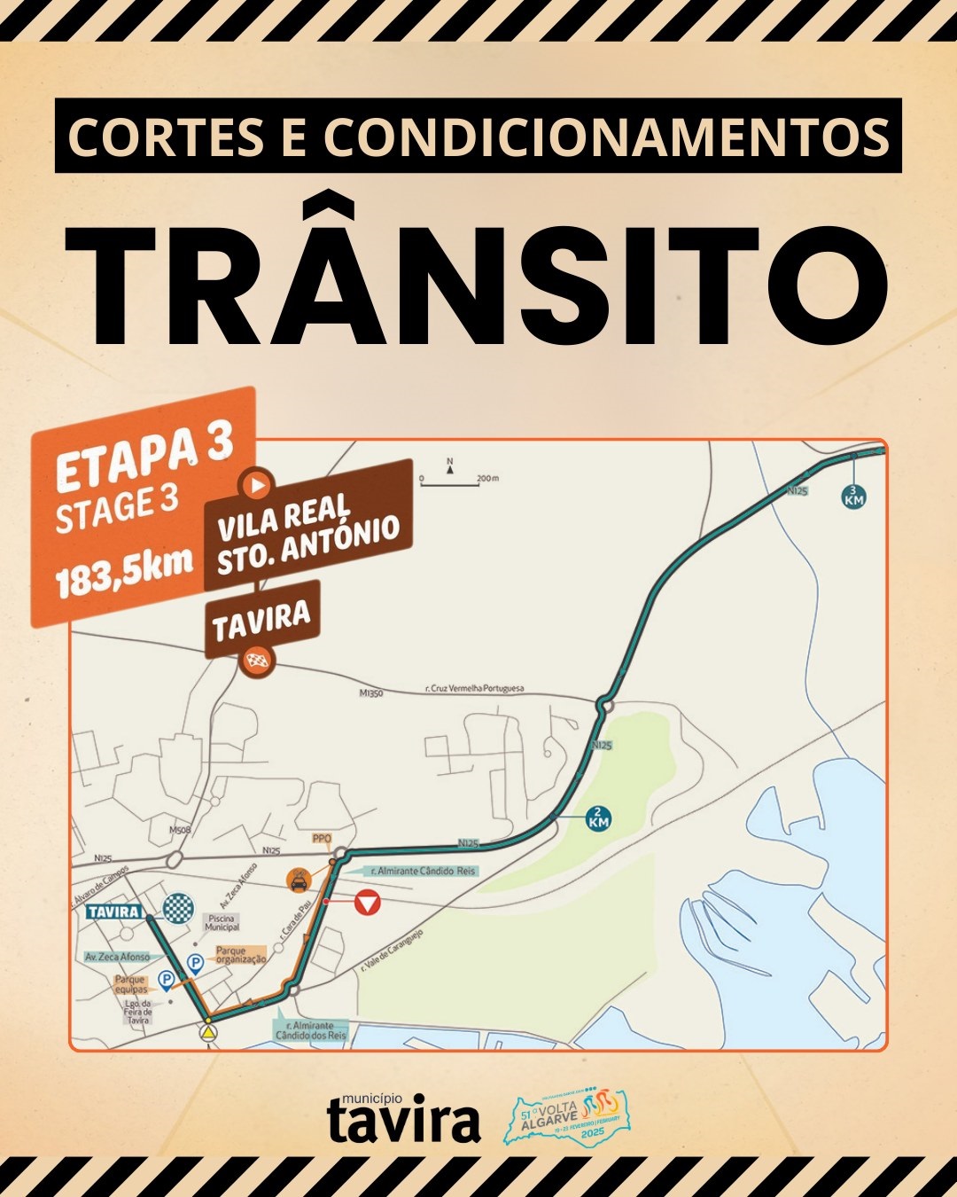 No dia 21 de fevereiro (sexta-feira), Tavira recebe a chegada da 3.ª etapa da Volta ao Algarve, com meta na Avenida Zeca Afonso (prevista para as 16h15).