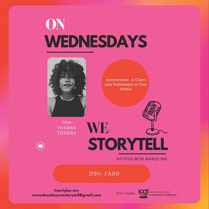 Neste dia 28 de março, o “On Wednesdays We Storytell”, tem a sua Edição Ao Vivo das 19h às 20h15, no Auditório do IPDJ, com o tema “Autenticidade: A Chave para Desbloquear os Teus Sonhos”