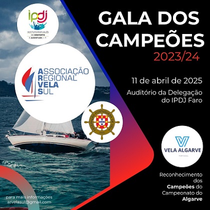 Uma vez mais, em colaboração com a Delegação Regional do IPDJ Algarve, a Associação Regional de Vela do Sul, vai realizar a 4ª Gala dos Campeões nas instalações da Delegação do IPDJ Faro, pelas 18h30, para entregar os troféus aos campeões Regionais e aos atletas que se destacaram nos campeonatos Nacionais e Internacionais, na época desportiva 2023/24.