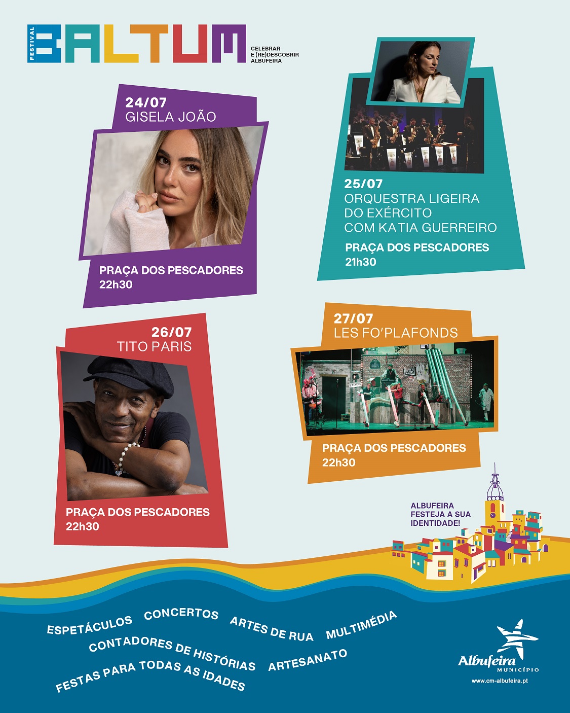 É já entre os dias 24 e 27 de julho que as ruas de Albufeira acolhem a primeira edição do Festival Baltum. Trata-se de um evento promovido pelo Município, que recupera a designação de Albufeira durante o período romano. “Celebrar e (Re)Descobrir Albufeira” é o ponto de partida para uma proposta que conta com 19 pontos de programação espalhados pela cidade.