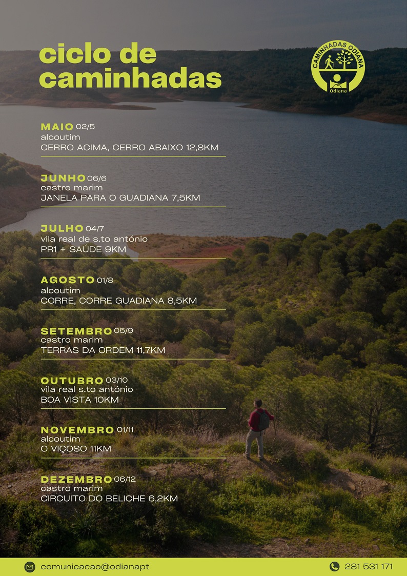 A participação é gratuita, sendo apenas necessária inscrição prévia. Todas as caminhadas contam com o apoio da equipa técnica da Odiana, garantindo segurança e orientação em todos os percursos.