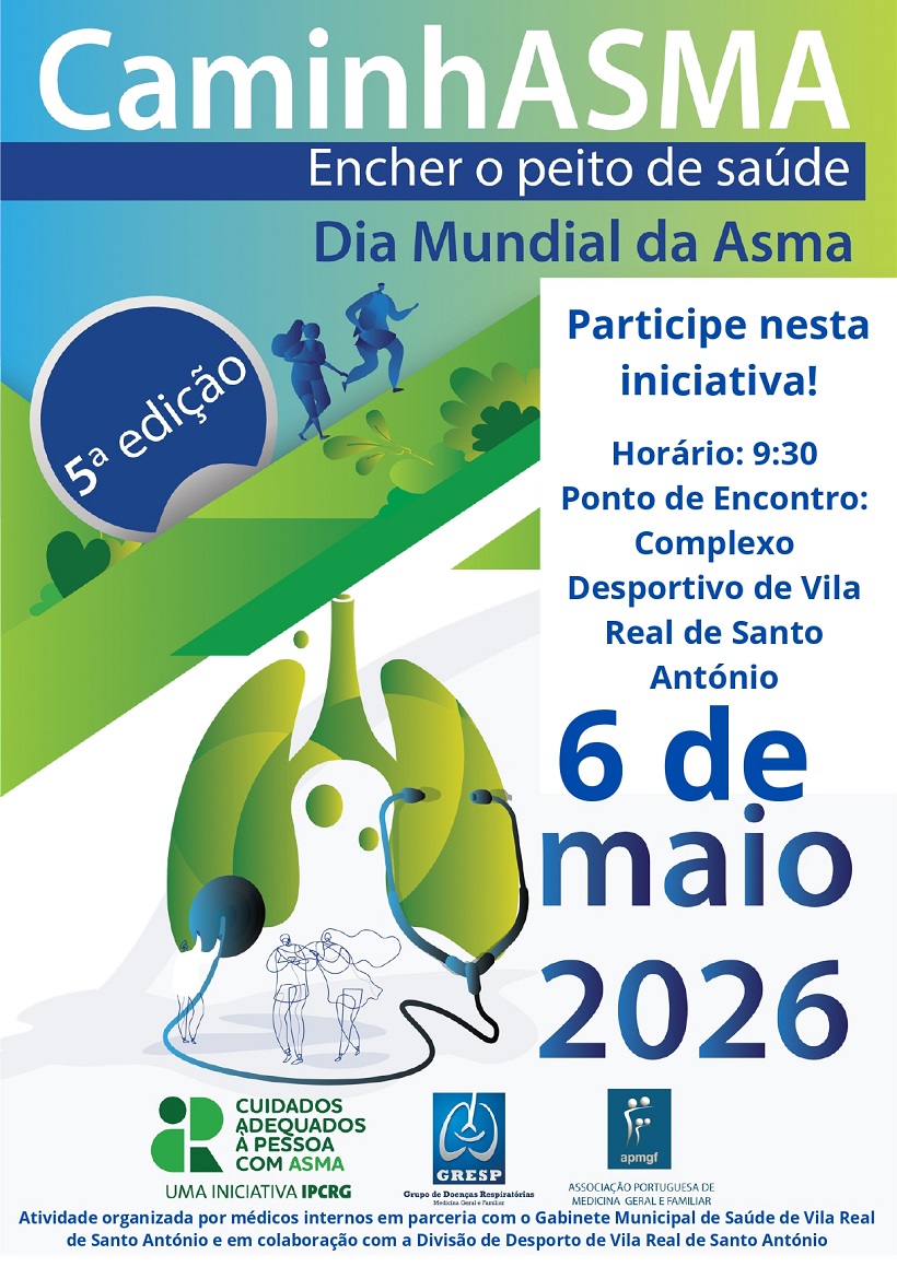 Vila Real de Santo António vai assinalar o Dia Mundial da Asma com uma caminhada, organizada por médicos internos da USF Levante, em parceria com o Gabinete Municipal de Saúde e com a colaboração da Divisão de Desporto do município.
