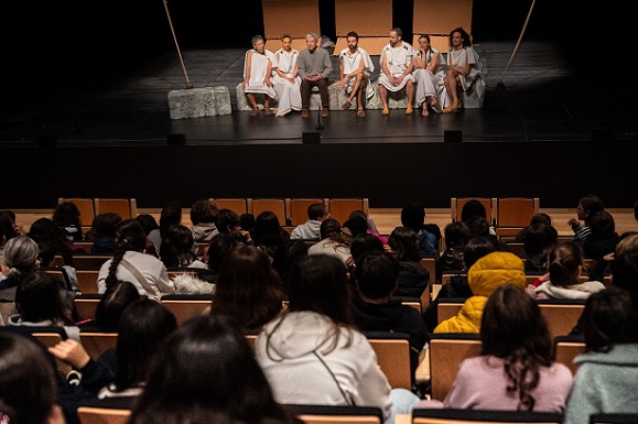 No final do espetáculo, houve lugar a uma conversa informal entre os atores, o encenador e o público, durante a qual os alunos puderam colocar as suas questões e aprofundar a compreensão não só da peça, mas também de todo o processo criativo, desde a escrita e conceção artística, passando pelos ensaios, até à sua concretização em palco.