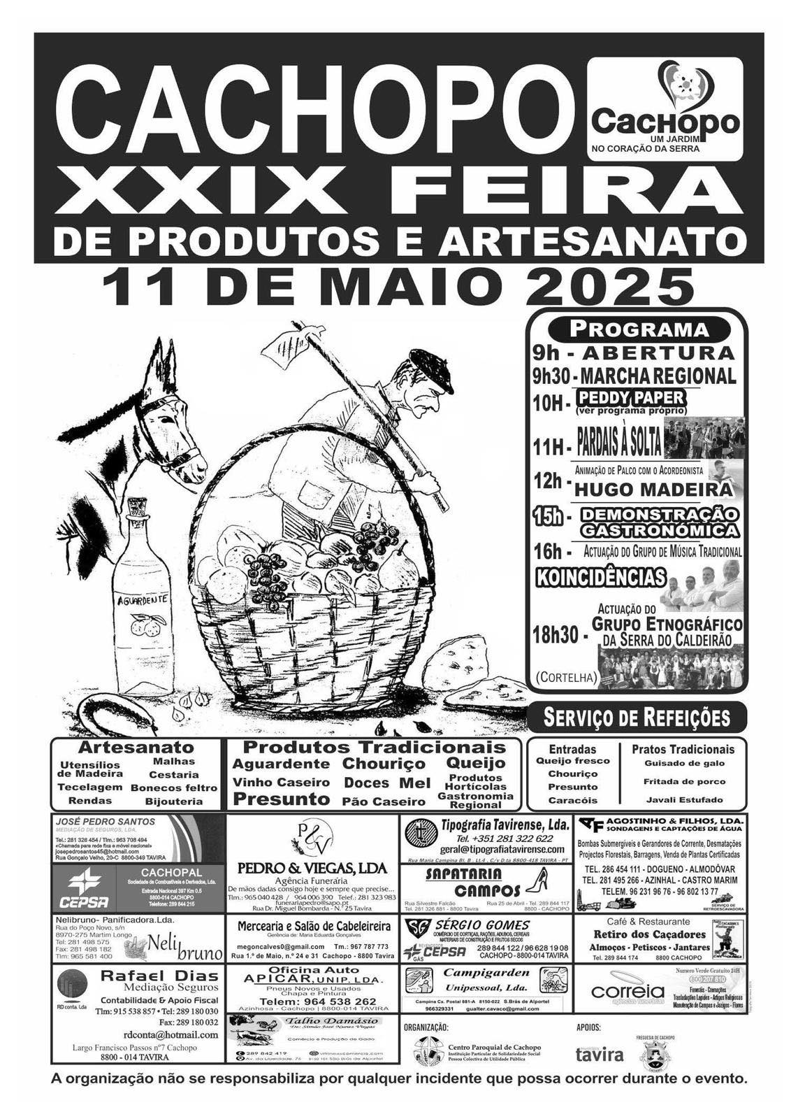Cachopo identifica-se como “um jardim no coração da serra”. E este domingo, 11 de maio, a sede da freguesia mais interior do concelho de Tavira recebe a 29ª edição da Feira de Produtos e Artesanato.
