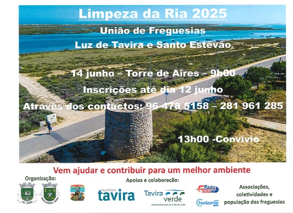 A União de Freguesias Luz de Tavira e Santo Estêvão realiza, neste sábado, dia 14 junho, a iniciativa Limpeza da Ria 2025.