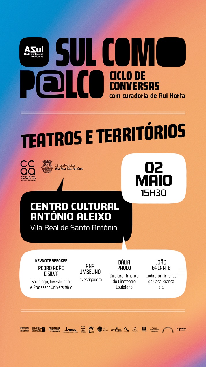 O Centro Cultural António Aleixo, em Vila Real de Santo António, recebe no próximo dia 2 de maio (sábado), pelas 15h30, a primeira sessão do ciclo de conversas “O Sul como Palco”, promovido pela Rede AZul – Rede de Teatros do Algarve.