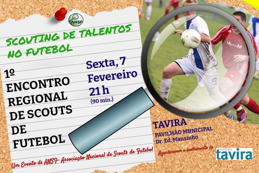 Tavira foi a cidade escolhida para acolher, pela primeira vez, na região do Algarve, o 1.º Encontro Regional de Scouts de Futebol, o qual terá lugar, no dia 07 de fevereiro, pelas 21h00, no Pavilhão Municipal Dr.