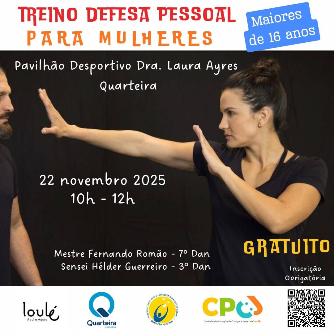 A CPCJ de Loulé convida todas as mulheres e jovens a partir dos 16 anos a participar na iniciativa “Treino de Defesa Pessoal para Mulheres”, que terá lugar no dia 22 de novembro, entre as 10h00 e as 12h00, no Pavilhão Desportiv