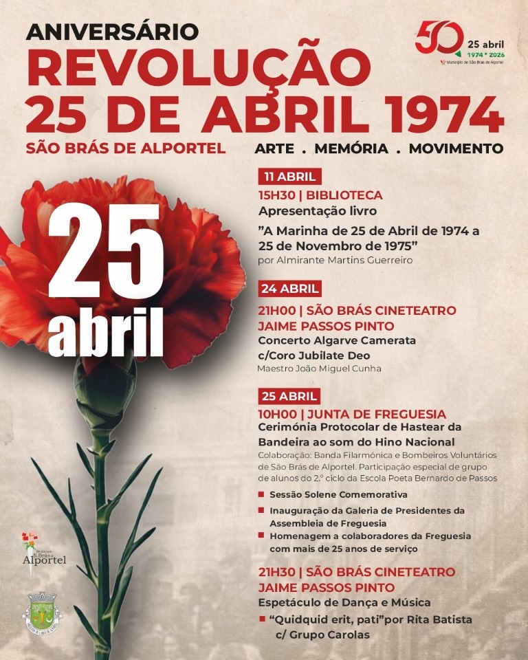 São Brás de Alportel volta a celebrar o dia 25 de Abril em evocação da Revolução de 1974, que deu ao país a democracia e a liberdade, com um conjunto de iniciativas que evocam a liberdade, a cidadania e a memória coletiva, reun