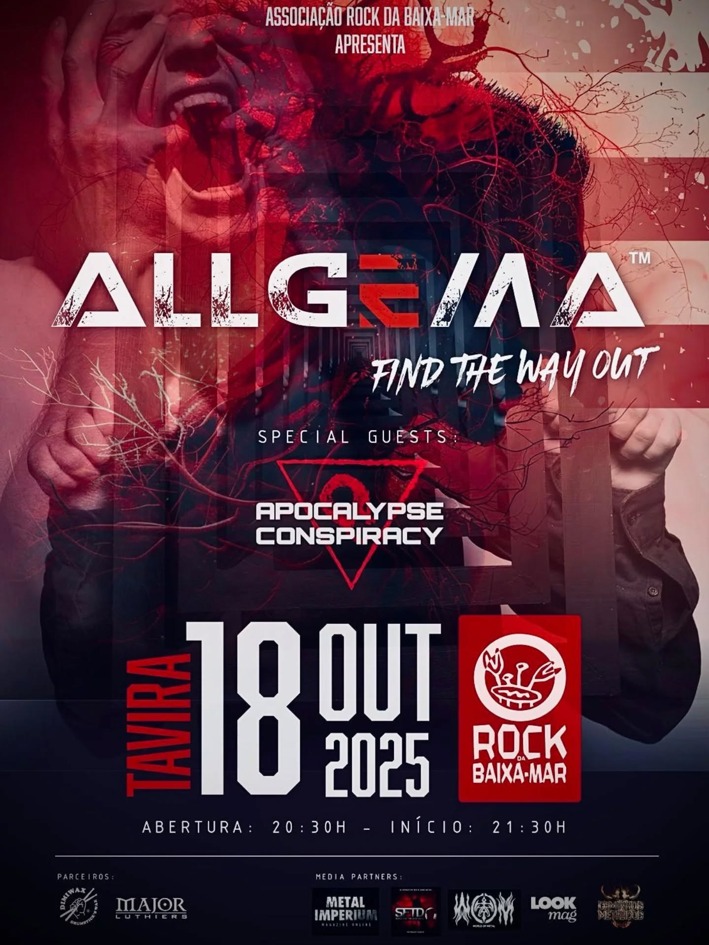 Em Tavira, na música, a Associação Rock da Baixa-mar recebe, neste sábado dia 18, um concerto com sons de peso. Ao palco sobem os Apocalypse Conspiracy e depois os cabeças de cartaz Allgema.